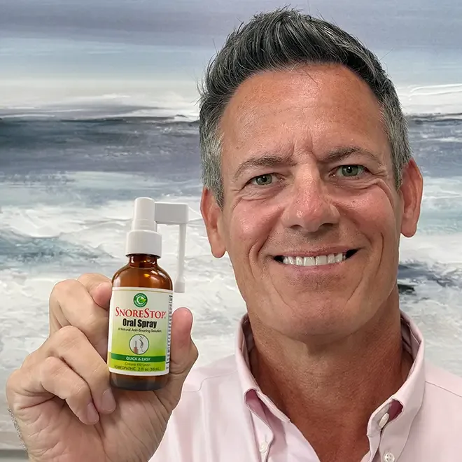 "My husband snored for all 24 years of our marriage. We tried so many products, but nothing worked or was too uncomfortable to use. Then we found SnoreStop spray and pills. When we use them together, the snoring stops through the night. I truly believe this product saved our marriage."